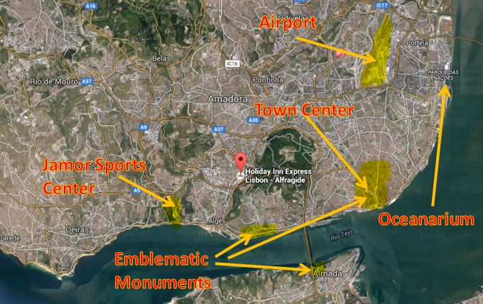 The Holiday Inn Express Lisbon Alfragide, situated between the Lisbon Town Center and the Shooting Range, offers modern air-conditioned rooms with a private bathroom. It features a lounge bar, 2 bright meeting rooms and a 24-hour front desk. Lisbon city centre is a 15-minute drive away. Each stylish, elevator-accessible room features a seating area with a flat-screen TV, a desk, free WiFi and tea/coffee making facilities. The private bathrooms come with a shower and a hairdryer. Some rooms have a sofa bed. A continental buffet breakfast is served daily in the hotel. Guests can also lay back in the comfortable armchairs of the 24-hour lounge bar, that serves Portuguese drinks and snacks. Local restaurants, cafés and the Alegro Alfragide shopping centre are within 10 minutes' walking distance from the Holiday Inn Express that helps if you want to eat cheap meals. The Inn's lounge serves Portuguese drinks and snacks and doesn't have swimming pool facilities.